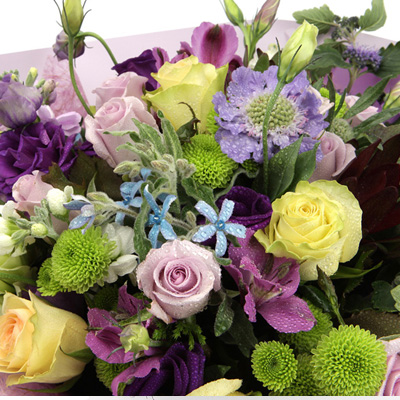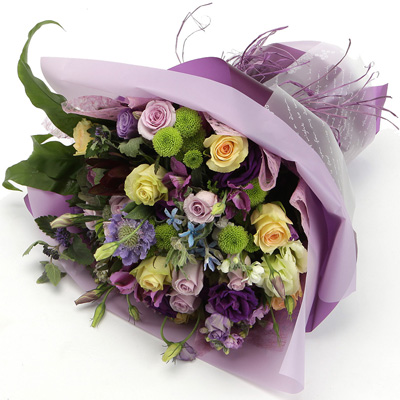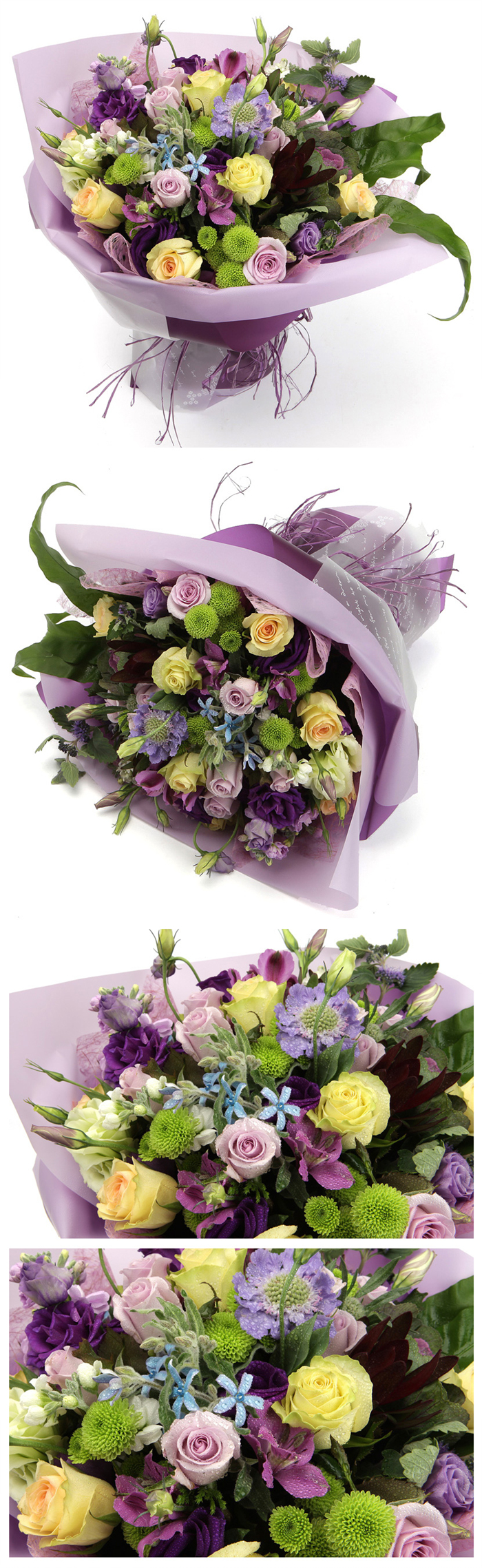 보라장미, 크림장미, 보라리시안셔스, 그린소국, 블루스타, 그린소재, 고급포장지와 세련된 디자인 전문 플로리스트 상품제작