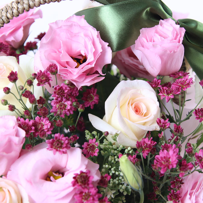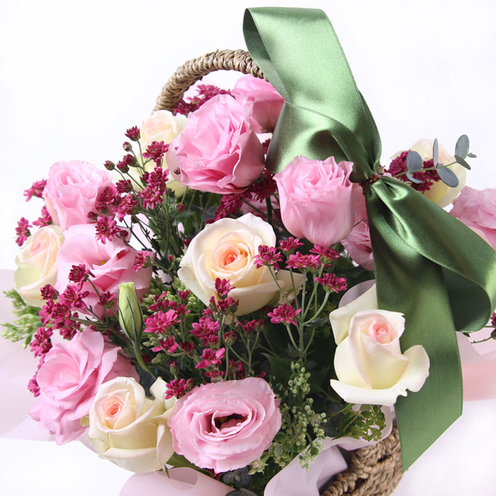 연노랑장미, 핑크리시안셔스,소국,불로초, 고급바구니와 세련된 디자인 전문 플로리스트 상품제작