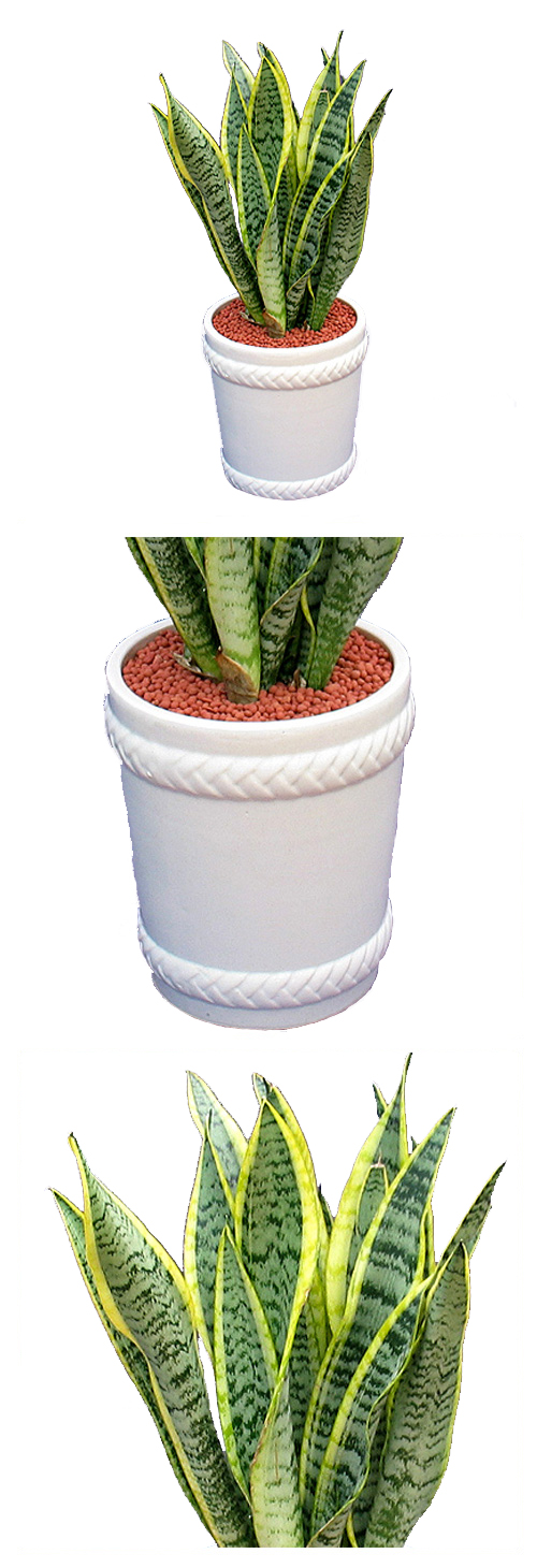 - 뱀같이 지그재그 무늬가 있어 ‘Snake Plant’라고도 불리는 다육질 식물로 빛을 아주 좋아한다.