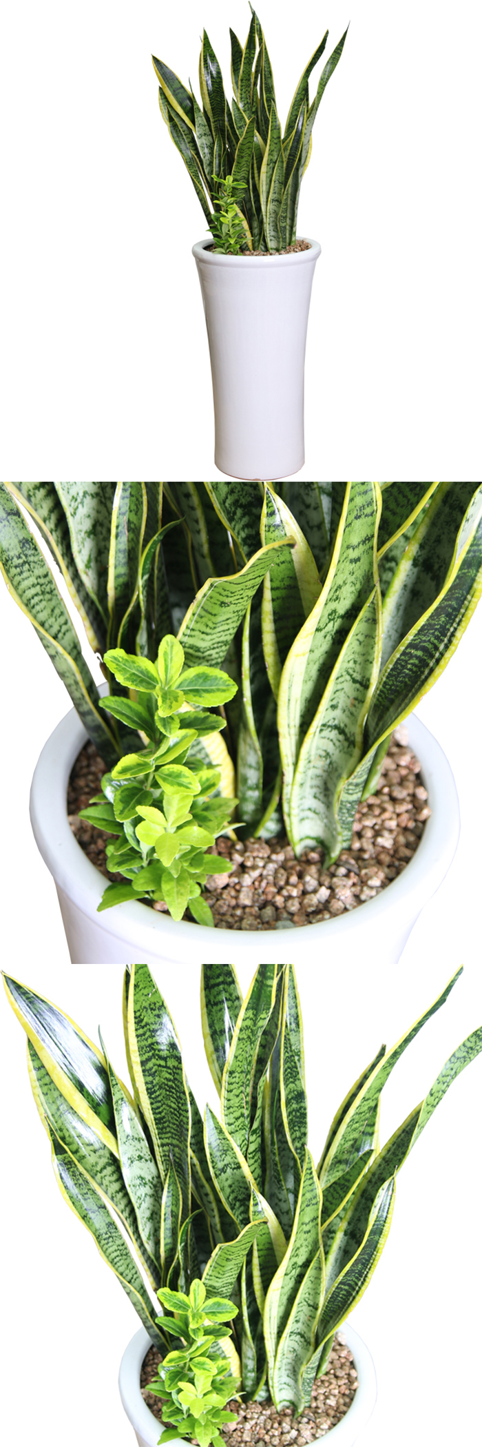- 뱀같이 지그재그 무늬가 있어 ‘Snake Plant’라고도 불리는 다육질 식물로 빛을 아주 좋아한다.